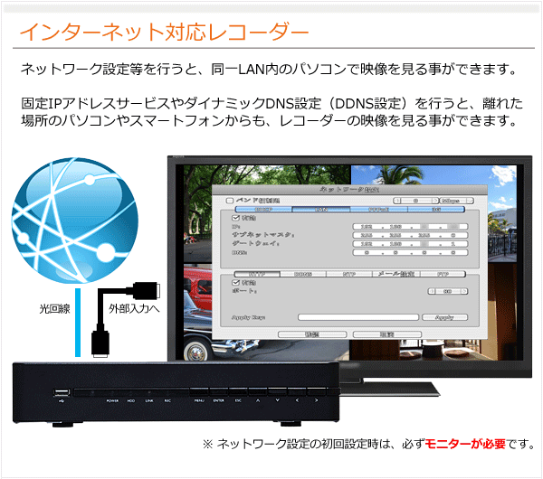 カメラ選定でミスの無いバリフォーカルレンズや赤外線カメラ・1TB内蔵デジタルレコーダーなど、屋内用・屋外用の監視カメラをお客様のご要望にあわせてご提案します。